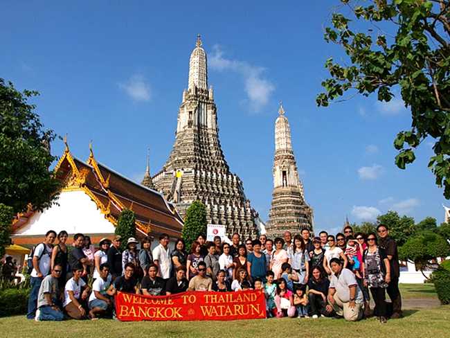 Group photo taken in front of Wat Arun, Bangkok