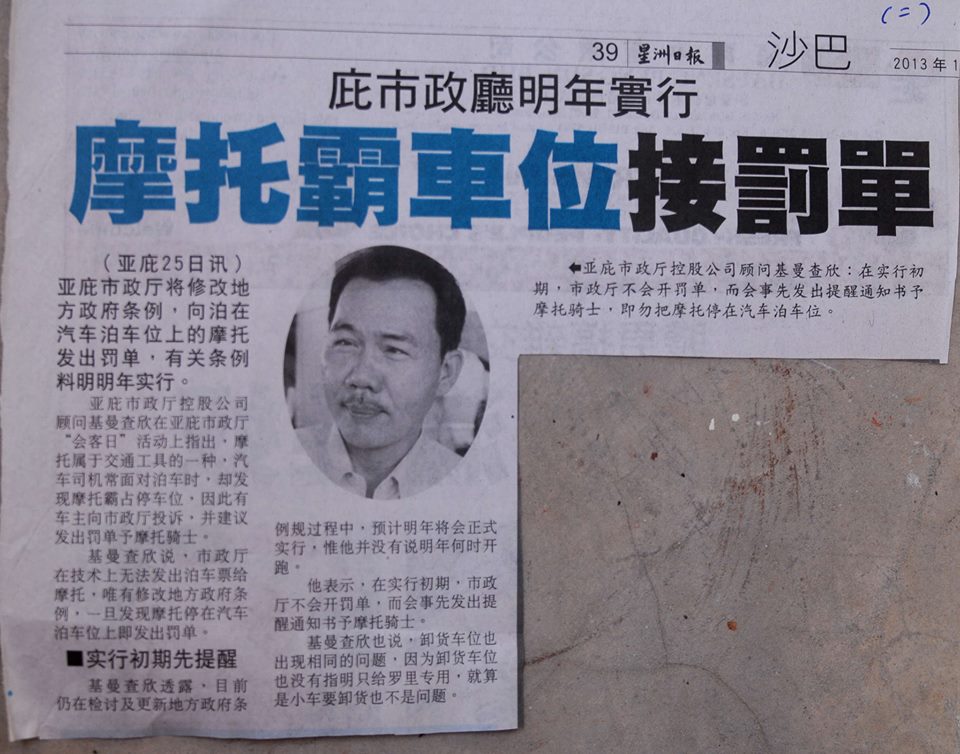 新闻:亚庇市政厅实行摩托霸车位接罚单