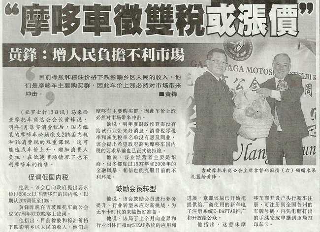 总会会长准拿督黄锋于吉坡摩托车商公会成立7周年联欢晚宴上致词