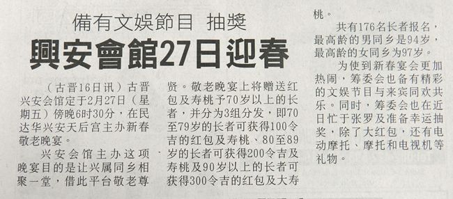 他称,除了新春联欢之外,同时也举办敬老晚宴,让年龄达70岁或以上的会员同乡也能与大家共享节日的欢乐。