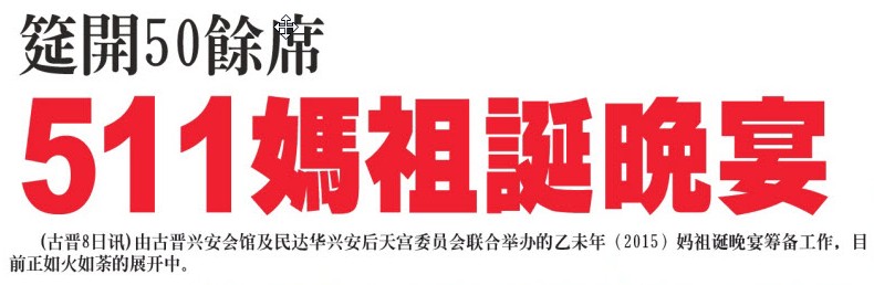 董事主席天猛公刘金荣受邀出席511妈祖诞晚宴