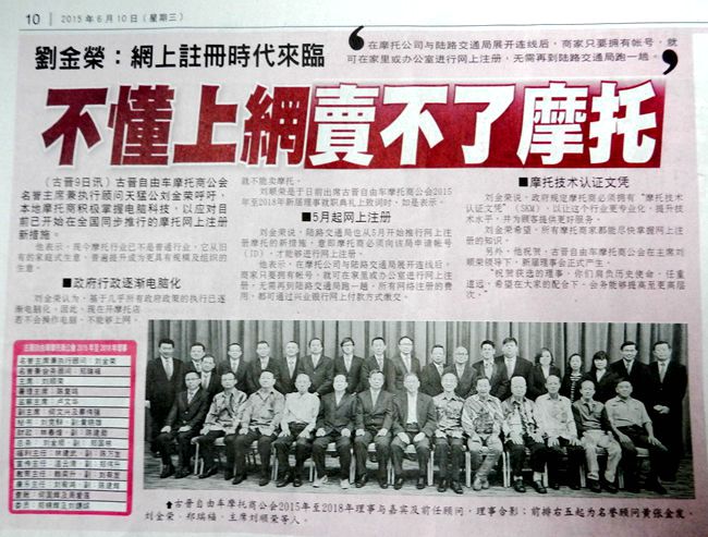 古晋自由车摩托商公会2015-2018年理事会就职典礼致词