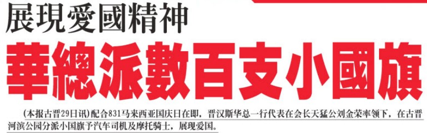 董事主席兼晋汉连华总会长分发小国旗庆国庆