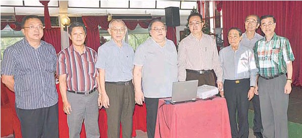 左起為秘書長蔡文鐸、副會長陳日枝、署理會長李錦新,右起為副會長拿督斯里蔡展文、副會長天猛公劉金榮、副會長拿督沈瑞永