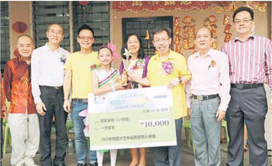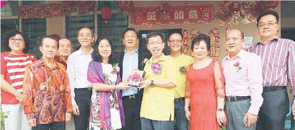 砂人聯黨主席拿督沈桂賢上議員(右5)在古晉中華小學校董會主席王長福(左6)及