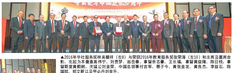 值得一提的是,榮獲2016年度教育服務獎的張榮海,自80年代開始積极參与社團活動,尤其是華文教育方面的付出,更是不遺余力。