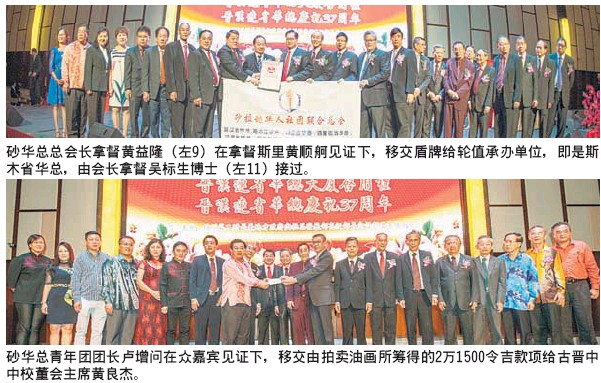 他說,晉漢連省華總成立37年以來,所有會員一直繼承和發揚中華民族勤勞勇敢,崇商重教,樂于奉獻的优良傳統,積极參与砂拉越各領域的建設,為砂州的政治穩定、社會和諧、經濟發展、文化繁榮以及華人之間的團結互助与优秀中華文化的傳承作出貢獻。