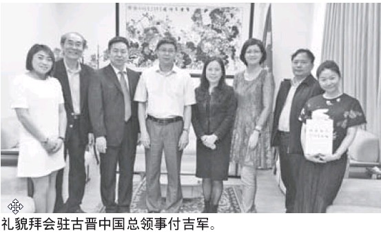 隨后,代表團前往中國駐古晉總領館,禮貌拜會駐古晉總領事付吉軍,獲得總領事招待午餐。代表團在离開古晉前,前往天猛公劉金榮的商業大樓參觀。
