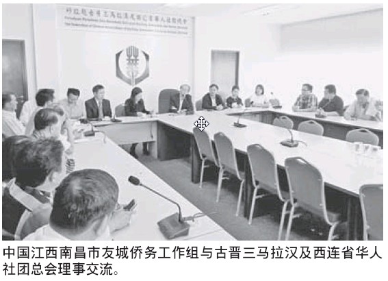 (古晉3日訊)隨著昨天禮貌拜會本州第二財長兼地方政府与社會發展部長拿督斯里黃順舸以及古晉南市市長拿督曾長青之后,中國江西南昌市友城僑務工作組在南 昌市外事僑務辦公室主任黃小燕的帶領下,于今天早上前往古晉三馬拉漢及西連省華人社團總會會所,与該會理事,包括青年團和婦女組進行交流。雙方在交流會上 針對文化,教育,旅游及經貿進行會談。一行人對華總新啟用的會所表示熱烈祝賀,并邀會長天猛公劉金榮組團前往南昌市參訪。