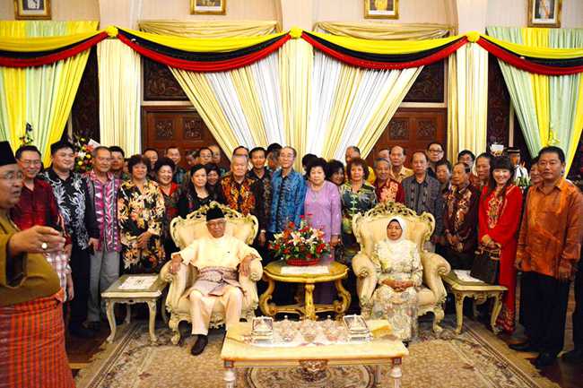 天猛公刘金荣带领晋汉省华总众理事向砂州元首敦沙拉胡汀伉俪贺节。