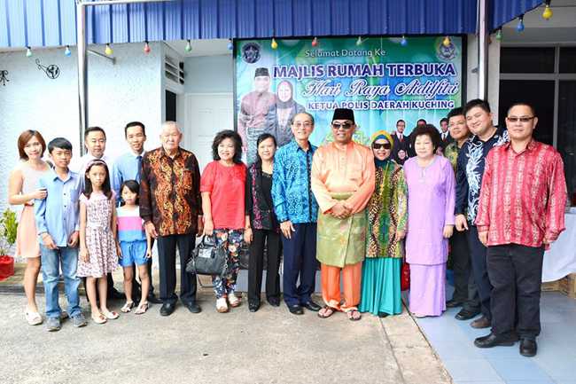 Temenggong Lu Kim Yong leading community leaders from Kuching divisions wishing selamat hari raya to Ketua Polis Daerah Kuching,