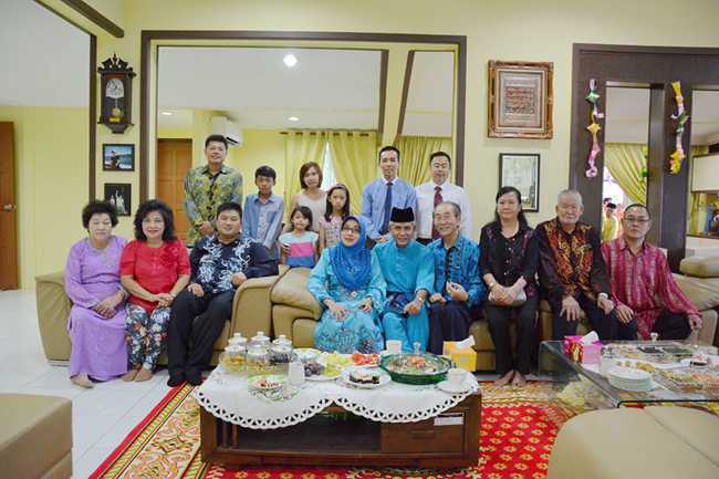 Temenggong Lu Kim Yong leading community leaders from Kuching divisions wishing selamat hari raya to