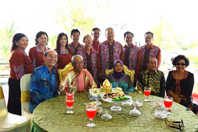 州元首伉俪贺节时合影。Temenggong Lu Kim Yong and committee members of Sekama Community Association taking group photo with