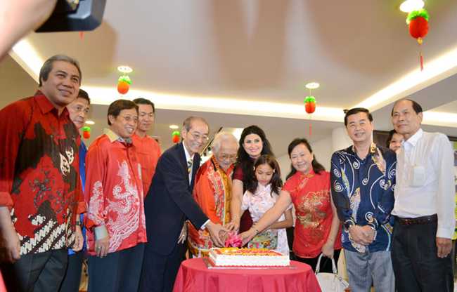 on the first day of the Chinese New Year.(CAKE CUTTING CEREMONY)(共切蛋糕仪式)