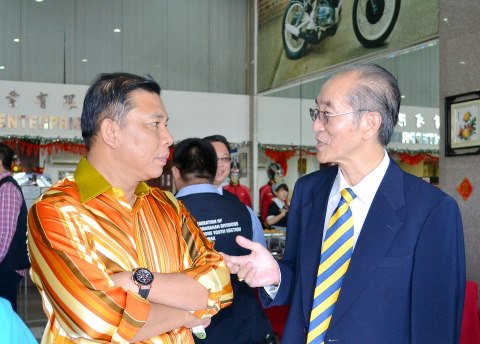 Speaking to YBhg. Datu Mustapar Han, Chief Private Secretary to YAB Sarawak Chief Minister(与砂拉越州首席部长高级私人秘书拿督慕斯打化汉寒暄)